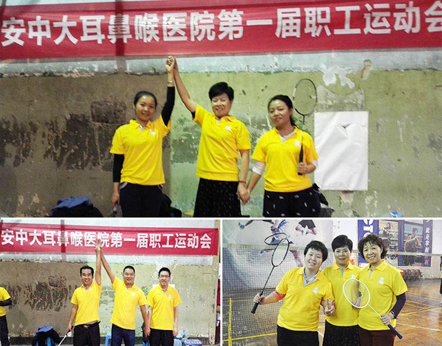 11月5日下午15:00,西安新城中大耳鼻喉医院届职工运动会在西安市体育馆的羽毛球馆隆重举行。全院 6支参赛队伍,240多名职工围绕羽毛球对抗赛、篮球5v5对抗赛、拔河比赛三个项目展开了激烈角逐。最终羽毛球男单冠军被眼科中心崔章强医生获得,羽毛球女单冠军被财务中心龚丽萍获得,篮球5v5对抗赛冠军被外联中心队伍获得,拔河比赛冠军被门诊中心获得。