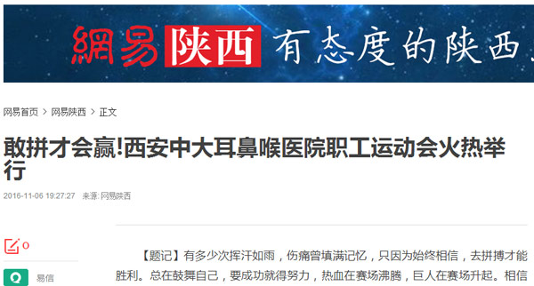 ▲聚西北名医,建专科医院。西安新城中大耳鼻喉医院届职工运动会开始啦!
